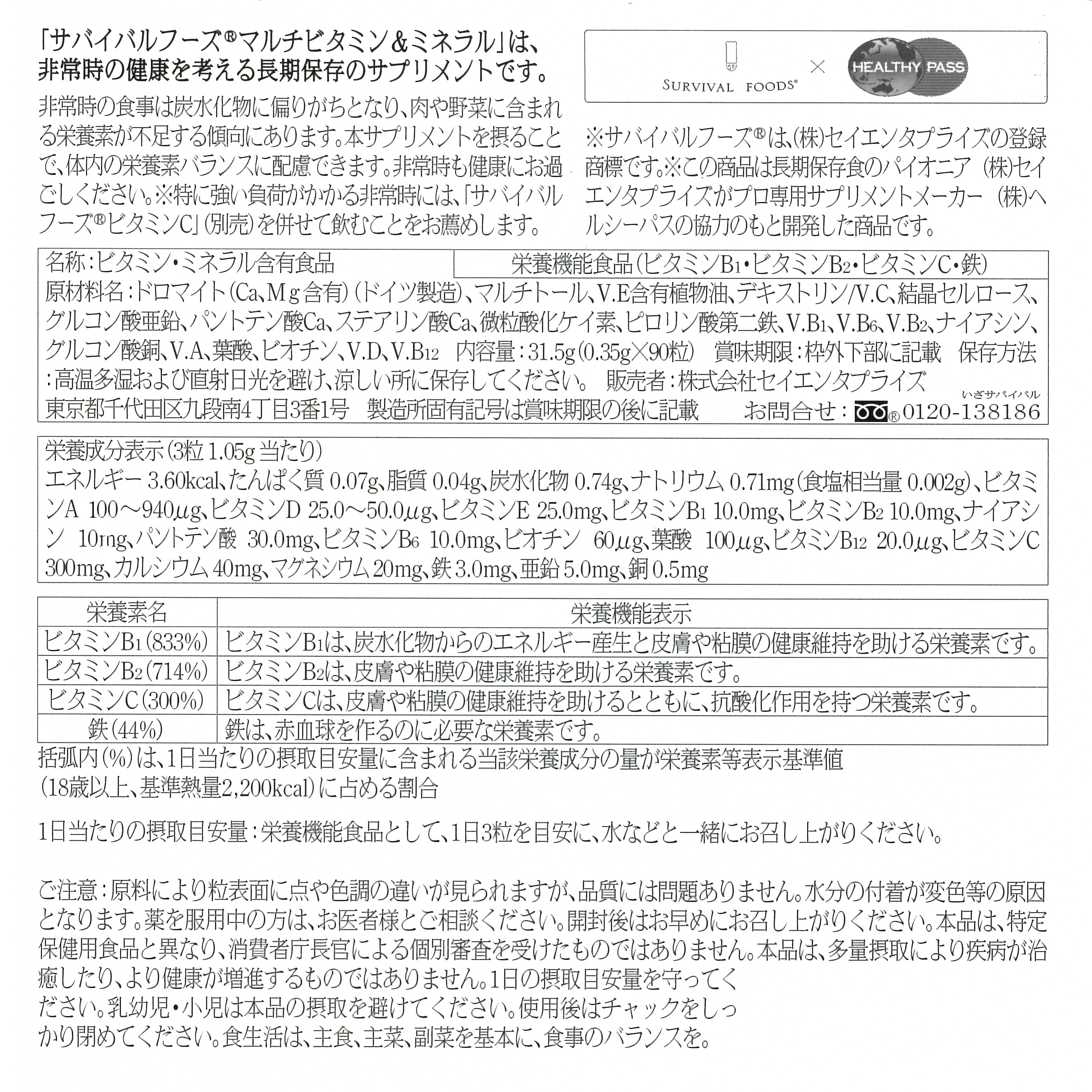 【サバイバルフーズ】サプリメント マルチビタミン&ミネラル ※10箱販売になります。